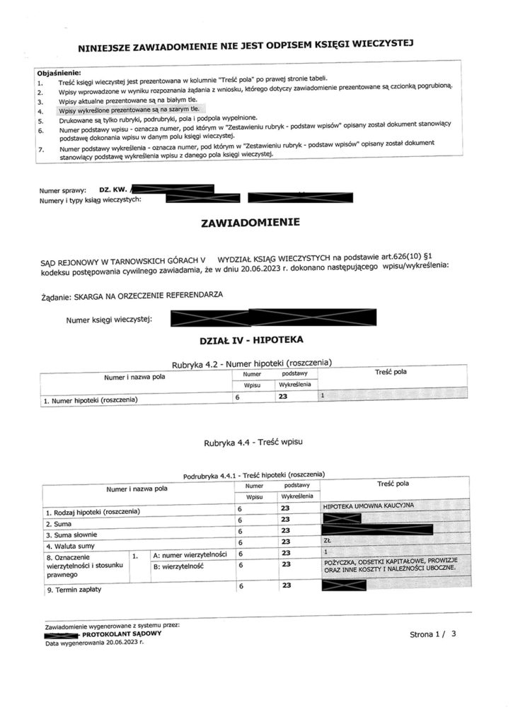Wobec takiego stanowiska sądu złożyliśmy skargę na orzeczenie referendarza. Skarga okazała się skuteczna, bo dziś otrzymaliśmy zawiadomienie o wykreśleniu hipoteki 👏👏👏