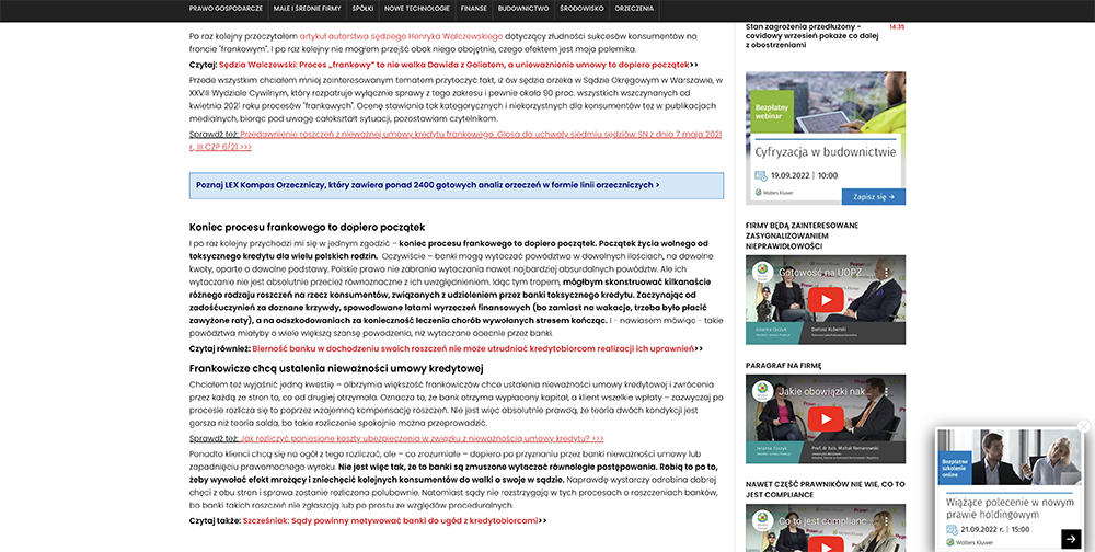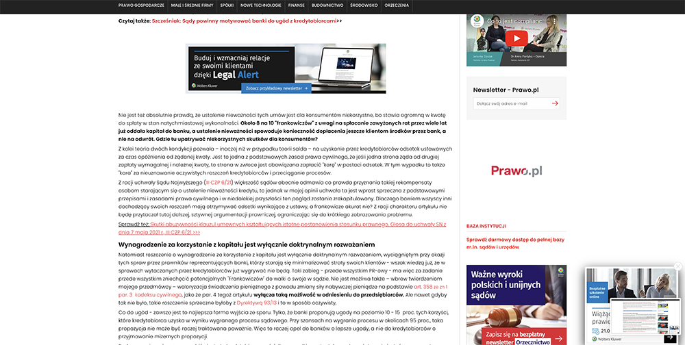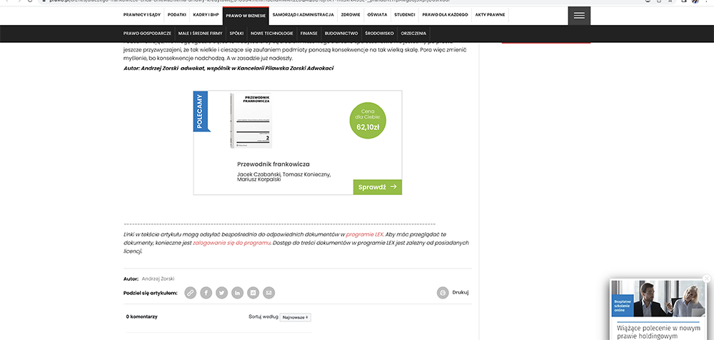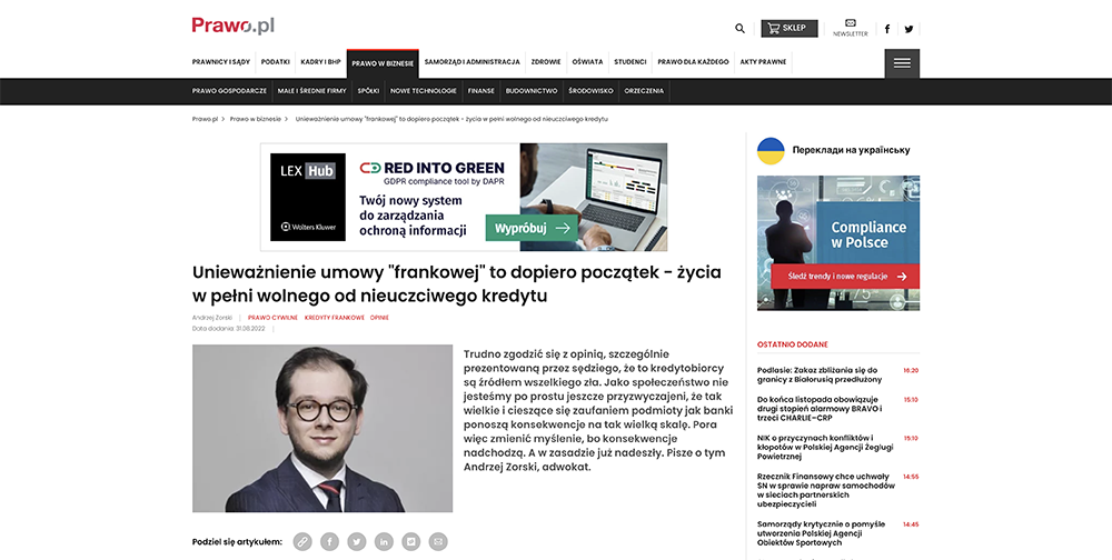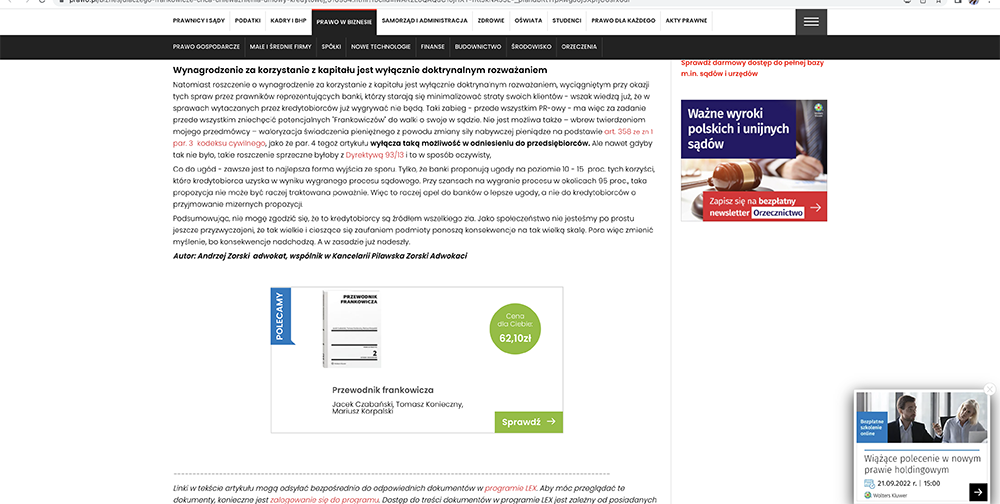 Odpowiedź na to pytanie znajdziecie Państwo w artykule autorstwa wspólnika w naszej kancelarii, mec. Andrzej Zorski. Publikacja stanowi też polemikę z ostatnim artykułem autorstwa jednego z sędziów orzekających w sprawach „Frankowiczów” w Sądzie Okręgowym w Warszawie.