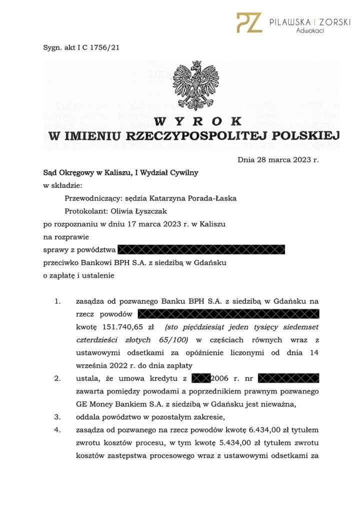 KOLEJNA WYGRANA Z BANKIEM BPH S.A. W SĄDZIE OKRĘGOWYM W KALISZU ❗❗❗