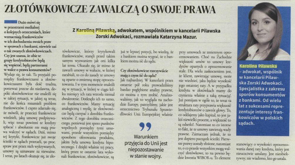 Zapraszamy do obejrzenia wywiadu z mec. Karoliną Pilawską w Gazecie Finansowej, gdzie opowiedziała o tym, czy Złotówkowicze zawalczą o swoje prawa.