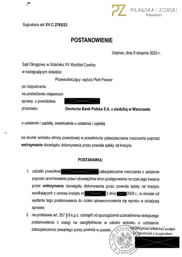 Kolejny Klient zwolniony przez Sąd z obowiązku płacenia rat kredytu, tym razem przez Sąd Okręgowy w Gdańsku i to w 7 dni od wpłynięcia pozwu do sądu ❗️ ❗️ ❗️